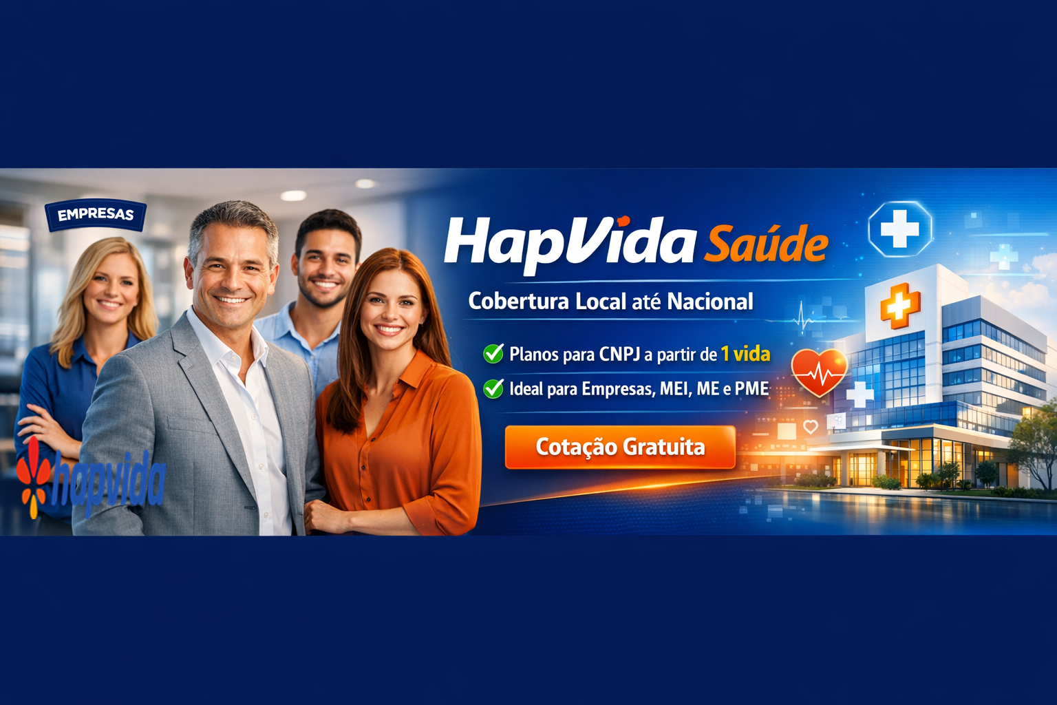 A Hapvida NotreDame Intermédica oferece planos de saúde completos para pessoas físicas, famílias e empresas, com acesso a uma ampla rede de hospitais, clínicas e laboratórios credenciados. A operadora disponibiliza planos empresariais a partir de 1 vida, ideais para MEI, pequenas, médias e grandes empresas que desejam oferecer assistência médica de qualidade aos colaboradores.