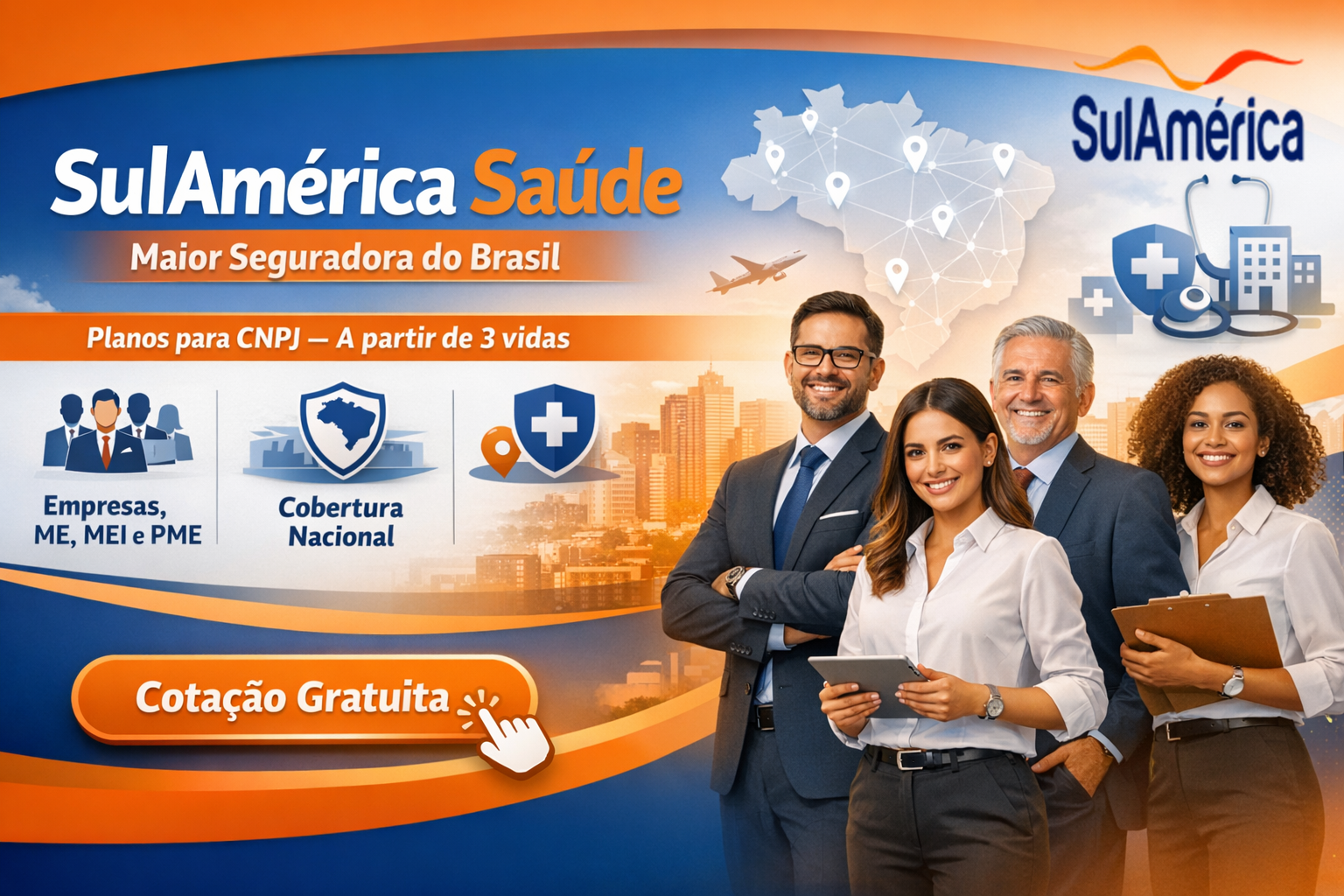 O plano de saúde da SulAmérica oferece soluções completas para empresas, MEI e famílias, com cobertura nacional, ampla rede credenciada e benefícios exclusivos para cuidar da saúde com qualidade e segurança. Os planos contam com mais de 14 mil hospitais, clínicas e consultórios, além de milhares de médicos e laboratórios em todo o Brasil, garantindo atendimento de excelência quando você mais precisa.
