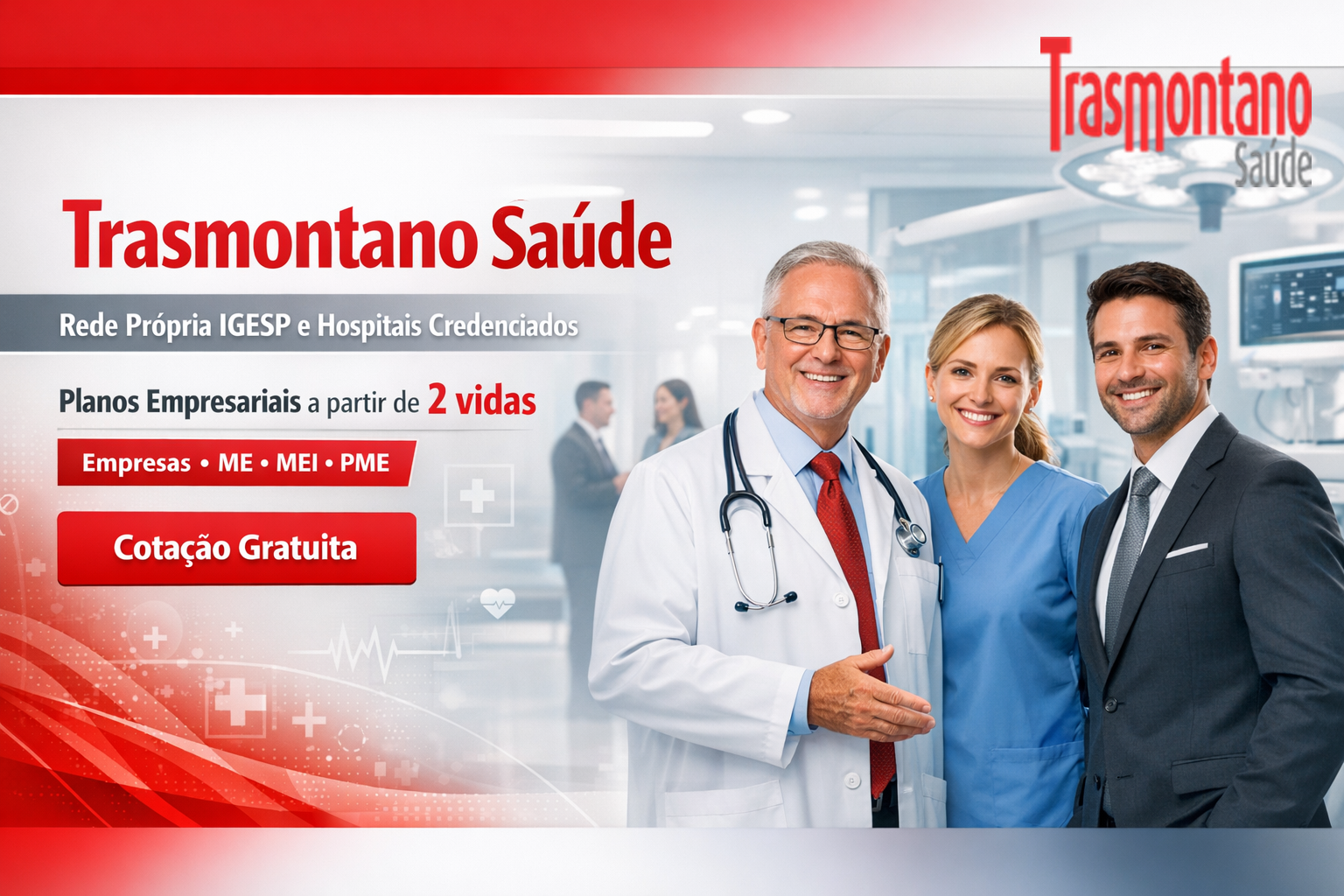 A Trasmontano Saúde é uma operadora tradicional com 90 anos no mercado de assistência médica no Brasil. Oferece planos de saúde completos para pessoas físicas e empresas, com cobertura para consultas, exames, internações e cirurgias. A operadora disponibiliza planos empresariais a partir de 2 vidas, inclusive MEI.