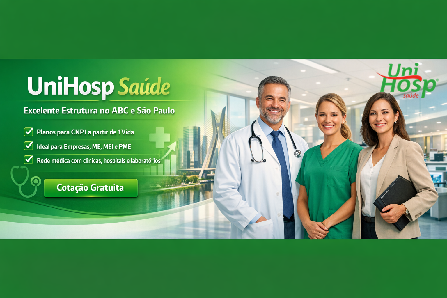 A Unihosp Saúde oferece uma linha completa de planos de saúde individuais, empresariais, com excelente custo-benefício e atendimento humanizado. A operadora conta com uma ampla rede credenciada de clínicas, hospitais e laboratórios, garantindo acesso a consultas, exames, internações e procedimentos médicos com qualidade e segurança.